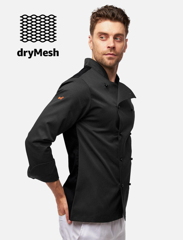 easyClean Herren Kochjacke mit dryMesh Rücken und Ärmel - inkl Kugelknöpfen - Langarm
