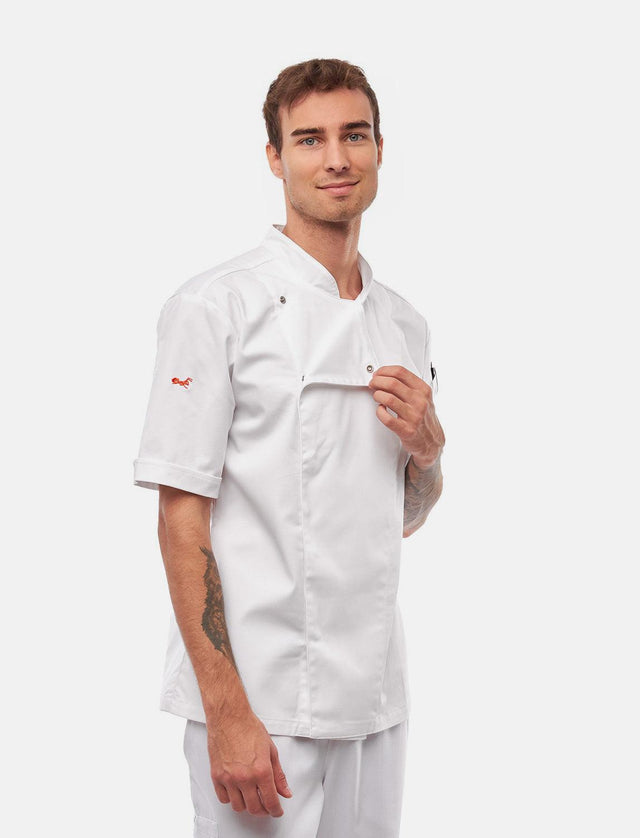 Stretch Herren Kochjacke mit Druckknöpfen Kurzarm Slim Fit